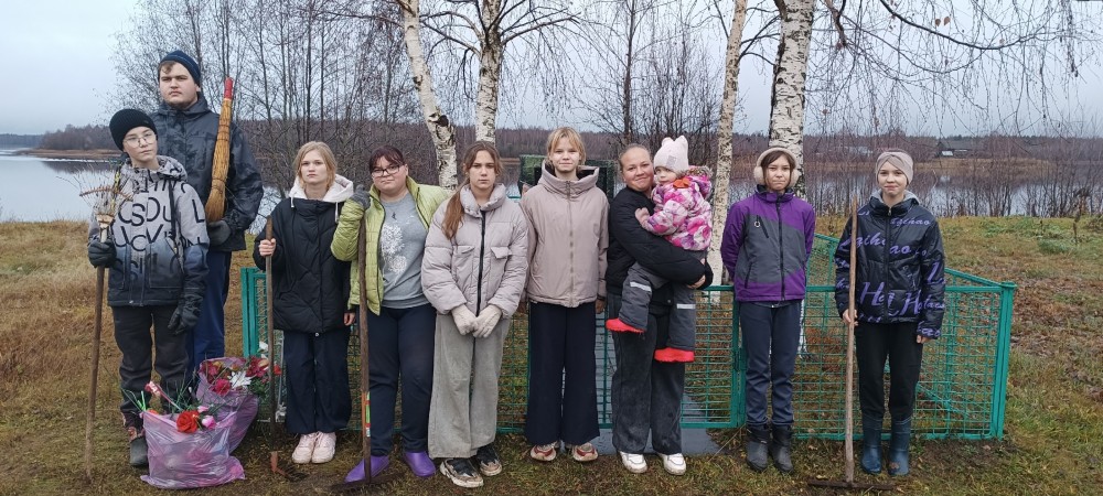 В День народного единства ребята из волонтерского отряда "Солнышко" п. Подпорожье провели акцию "Десант памяти" и убрали территорию у Памятного знака.