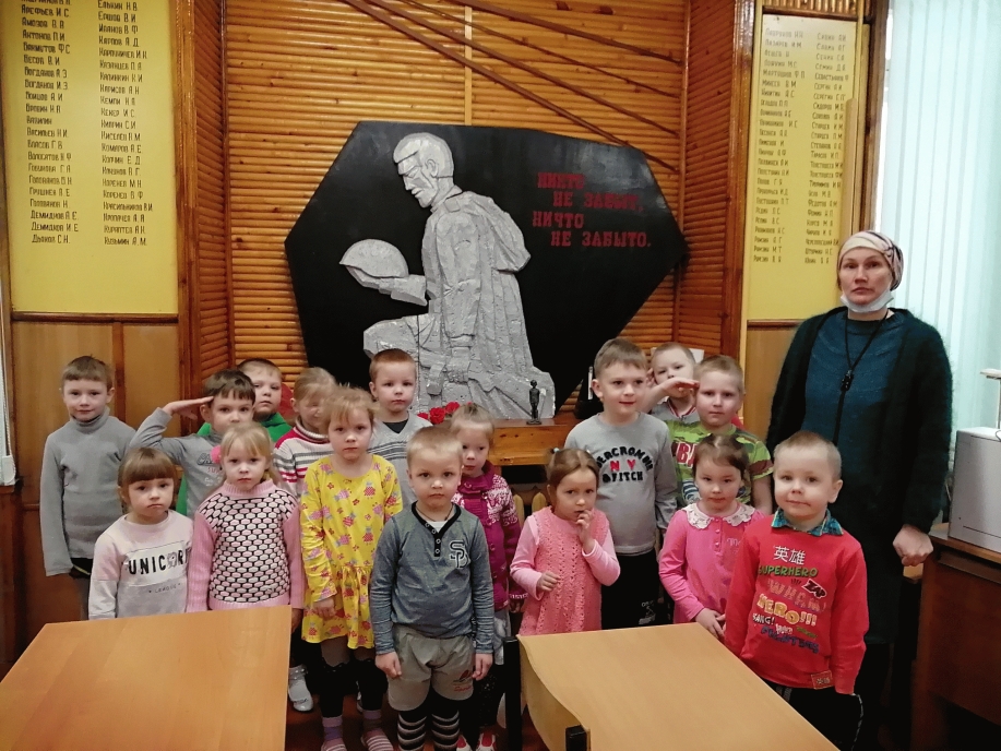 24 февраля дети разновозрастной группы п. Шальский посетили школьный Музей воинской Славы, который произвел на детей большое впечатление. Затем прошло тематическое мероприятие, посвящённое ДНЮ ЗАЩИТНИКА ОТЕЧЕСТВА, на котором дети отгадывали загадки, пели песни, танцевали и читали стихотворения. Все участники проявили большую активность, подарили друг другу хорошее настроение, радость общения и улыбки.