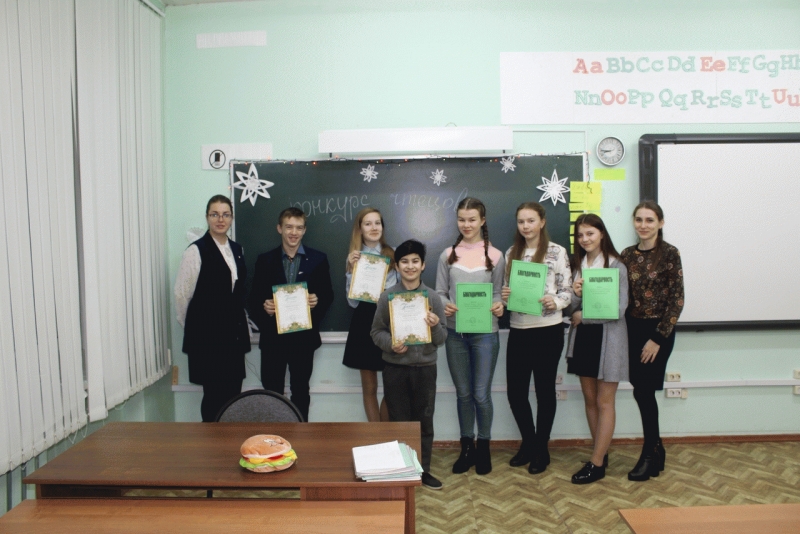 6 участников: Шихмагомедов Тимур, Голубцова Дарья, Богданова Анфиса, Лузанов Никита, Мухина Дарья, Герасимова Наталья читали стихи на английском языке. Подведены итоги: 1 место - Шихмагомедов Тимур, 2 место - Лузанов Никита, 3 место - Мухина Дарья. МОЛОДЦЫ!!!