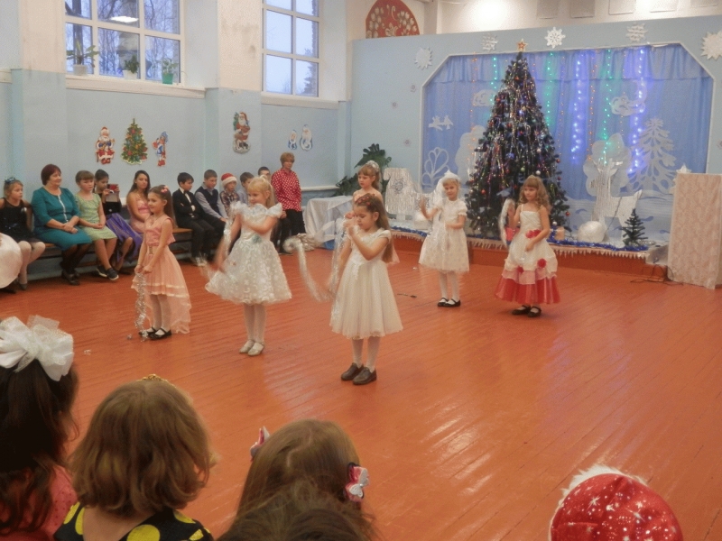25 декабря состоялся новогодний праздник для учеников начальной школы. К детям приходили в гости домовой Кузя, Баба-Яга, королева Грелла, Дед Мороз и Снегурочка. Все играли, пели и водили хороводы.