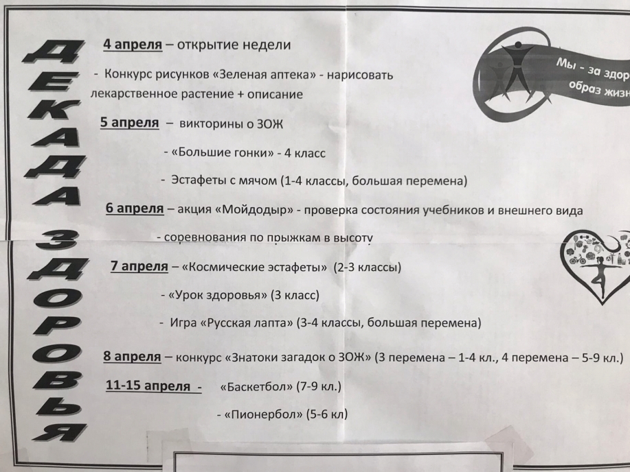 С 4 по 15 апреля в школе прошла ДЕКАДА ЗДОРОВЬЯ.