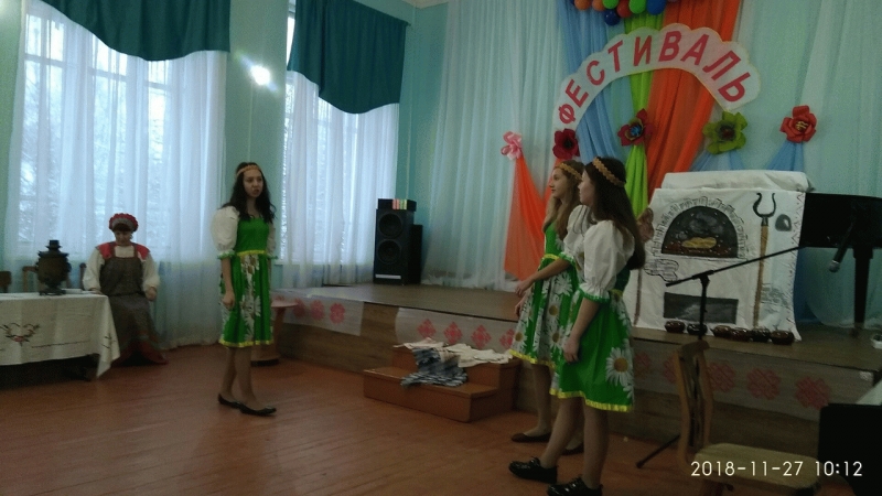 27 ноября ученицы 8 класса - Соловьева Полина, Мухина Дарья и Герасимова Наталья приняли участие в Фестивале национальных культур. Нашей школе было дано задание показать русские посиделки, с чем девчонки отлично справились.