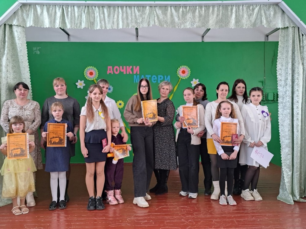 7 марта в нашей школе празднование Международного женского дня прошло в виде конкурсной программы «Дочки-матери». Мамам с дочками предстояло пройти 6 конкурсов с которыми они легко справились. Участниками праздничной программы стали 7 семей: Костенко Ульяна и Анна Сергеевна, Гоменюк Нелли и Наталия Александровна, Ермакова София и Марина Сергеевна, Баландина Олеся и Анна Александровна, Голубцова Мария и Виктория Ивановна, Морозова Александра и Александра Владимировна, Гуща Ангелина и Елена Владимировна. И, конечно, школьники с радостью поздравили своих дорогих и любимых мам, спели душевные песни, показали веселые сценки. Всем огромная благодарность за участие.