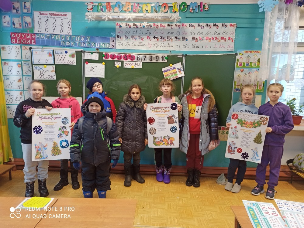 Ребята из волонтерского отряда п. Подпорожье изготовили поздравления для своих односельчан с Новым годом и развесили территории посёлка.